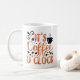 Kaffe O'Clock i orange med svarta accenter - kaffe kopp och kaffebönor.