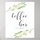 Kaffe pub Watercolor grönt löv bröllop-tecken Poster