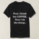 Först dricker jag kaffet. därefter gör jag sakerna