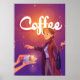 Kaffe, tecknad och poster, kvinna tar kopp i drycken