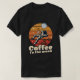 kaffe till månen, en vintage rolig kaffedesign har en cool retro solnedgång och en astronaut som flyter i rymden med sin kaffekopp.