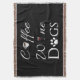 Perfekten kastar filt för dem som kärlek kaffe, vin och hundar. Bröstfiltret har en finare-text för kaffe med en kopp-kafé för brev "o", vin som innehåller ett glas rött vin för brev "i" och hundar med en dekoration för att ersätta "o". Ytterligare presentartiklar tillgängliga med den här designen också.
