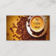 Denna visitkort presenterar som förhöjs digitalt, avbildar av en kaffekopp som omges av kaffebönor. Alla av text kan skräddarsy som behövd.