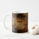 Kaffeälskare kan fira deras passion för bönan och dricka deras favorit- dryck i stil med denna mugg som presenterar en grafisk design av att ånga muggar och kaffe släkt ordkonst.