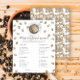 Vattenfärgade kaffebönor och kopp av kaffe och bönor mönster. Kaffe, brinnande babydusch Kaffet, den där babyduschen med. Text med kaffe ring och med kaffebönor och kopp av kaffe.