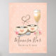 Kärlek är i luften! Uttryck din glädje över din kommande vigsel med en stor portion kärlek med detta Mimosa Bar-skylt i krämiga, bruna, rosafärgade och silverfärgade nyanser med två kaffekoppar som kan förses med brudens och brudgummens initialer och monogram på den rosafärgade hjärtformade designen. Dessa ångande kaffekoppar på en tallrik med en sked har ett skumhjärta flytande i den. Ett glas champagne med silverfärgad kant och rosafärgade rosor och krämfärgade nejlikor. Polkagris-hjärtrytmig bakgrund. Konst © Chrissy H. Studios, LLC. Med ensamrätt.