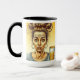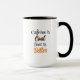 Kaffein är bra, men öl är bättre. Ett lustigt citat kaffe mugg. Lustigt, men dam som håller upp en mugg öl.