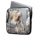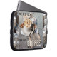 Laptop sleeve med ett kaffe på en metallisk bakgrundsdesign med byggnad block. För brans början!