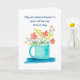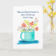 Skicka lite vardaglig vänlighet med detta glada akvarell-kort med ett teal-färgat kaffekopp fylld med blommande blommor och det uppmuntrande budskapet ”May you have a flowers in your coffee cup kind of day” (Må du ha en dag med blommor i din kaffekopp).