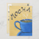 Den här oljemålningen är av en brinnande hett kopp av mocha-kaffe. Kaffet mugg är en djup blått i färg med en motsvarande såser. Kopp och plattan är av centrerad i målningen. Hett kaffe har vita ångvirvelar som kommer från yta och kryper runt texten ovanför den. Ord ovanför kaffet är "Mocha" och är skrivet i kalligrafens stil. Texten är svart, medan bakgrunden till målningen oftast är ljust än i färg. Målningen har också ett tunt gräns av ljusbrun eller mörk än så. Hela målningen har en lycklig, vismisk känsla av det.