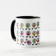 Ljusa kulöra tecken på en mugg som ljusnar de tidigaste morgnarna.