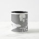 Kaffemugg med mitt abstrakt konstverk "odödlig", ett skelett på en cykel som jagar en slända