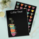 Kafé eller chailaff menyfolder. Färgglada porslins tekoppar/kaffemuggar. Anpassningsbar text och ledigt utrymme.