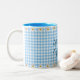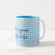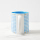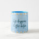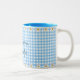 Kaffecitat på akvabin gingham-bakgrund med vit daisy gräns.