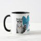 En beundransvärd liten tvättbjörn håller kaffe kopp med ett blått hjärta bakom sig. Bilden finns på två sidor om mugg, med texten mellan bilder som säger "COFFEE är mitt SPIRIT ANIMAL". Cute!