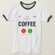 En rolig T-shirt som visar din kärlek till kaffe på ett modernt sätt — som om det ropar på dig för din dagliga dos.