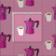 Kaffe älskare art - espressobryggare, italienskt kaffe och en kopp kaffevacker konst för kaffet älskare. Anpassningsbarnas bakgrund färg.