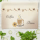 Kaffe- och kökshandduk med en bild av ett kaffe kopp och en daisy.