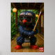 Kagu Kendo Master Bilden är av en stiliserad, Yanbaru Kuina-liknande karaktär som är klädd i traditionell Kendo-pansar. Tecknet bär en mörk blått kendogi (uniform), en skyddande fingu (pansar) med en ansikte-mask och ljusröda skor. Dess ansikte är en stiliserad skak, och den har en blanka (bambosvärd) i händer. Bakgrunden verkar vara en traditionell japansk dojo eller byggnad med bamboo golv, träkolonner och pappra lyktor som hänger från taket. Lush-gröntar är synliga i bakgrunden, vilket tyder på en tropisk eller utomhusmiljö. Tecknet placeras som om redot till träning eller duel skulle användas.