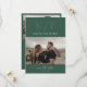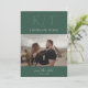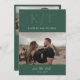 Modern bröllop spara datum-kort med chic- och contemporary med minimal layout. Överst finns ditt monogram i ett stort format med fetstil tillsammans med namn. I mitten är ditt favoritfoto för vågrät och nedan är "spara datumet" i ett skript för elegant och ditt bröllop-datum. Baksidan har ett andra vågrät bild tillsammans med ytterligare detaljer. Färg-paletten är jägare grönt, skapar detta för att spara datumkortets underbar för höst- eller höstbröllop, men kan uppdateras till valfritt färger som du väljer i designredigeringen av verktyg.