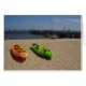 Tom kort med ett par sommarhavskajakker på stranden i Provincetown, Mass.