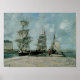 Vintage marin målning "Quay at Honfleur" från 1865 av Eugene Boudin.