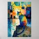 Denna utformning skildrar en katt som genomsyras på kajsidesidan och som ser ut mot det mousserande vatten och staden utanför. Biet har ljusreflektioner och vibrerande akrylat färg, med blåa och gula abstrakter som tillägg till färgpaletten.