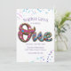Toppen dekorerad kaka för första födelsedag, komplett med frost och sprinkles.