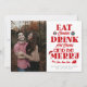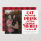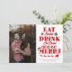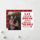 Klar julkort för par med ditt foto och en röd typografi julklapp med texten: Ät kakor, drick hett kakao och var god. Inslag som omger texten och kortet är personlig med ditt foto, meddelande och namn. Det här kortet återgår till en röd och svart plaid-design.