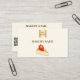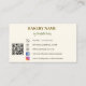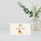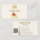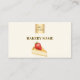 En mjuk beige, gräddbaksida för färgaden. Dekorerad med en ostekake med en röd jordgubbe. Anpassa och lägg till din logotyp och namn på framsidan. Svart, gult, text. Tillbaka: Mallar för Ditt namn, titel, mobilt nummer, e-post och webbplats adress, ditt eget QR-nummer till webbplatsen eller social-mediekontot. Ikoner/konto för Facebook och Instagram.