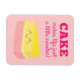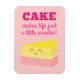 En kawaii-gult leende tårta med rosa påse. Det lustiga och visuella citatet lyder: "Kakan gör livet bara lite sötare!" När livet är bittert och hårt kan kakan kanske inte vara en lösning på livet, men den gör den säkert lite sötare. En söt och glad design för alla med en söt tand- och kärlek-kaka.
