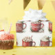 Vattenfärgad hett choklad i rött mugg på vit bakgrund