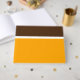 Den här formgivningen av den formella roligten har en bred kakaoblok rand, som skisserats i vitt, ovanför ett pulserande, ljust gyllene färg-block som fyller resten av designen.