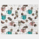 En söt, mysigt vintertext av hett choklad och marshmallow, kakao, glass sundaes och chokladkakor och kakor. Perfekt mönster under ett kall vinterdag. I färg av brunt, tealt, rött, vitt och svart.