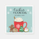 Varma upp med en mugg av hett kakao och kakor vid en julfest i roligten. En blå bakgrund i snö visar den röda mugg med kanel och piskgrädde. Julkakor har lagts ut. Underbar för en helgdag eller en julkaka party, en hett choklad i födelsedagsfest, ett party med en kakaopub, eller till och med en postskris i firande! Tillgängligt med matchande produkter.