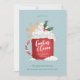 Kopp i hett kakao med vispgrädde, sprinkler och snöflingor illustration med redigerbar text, inklusive rubrik till kostym om eventuella julklappar party. Originalillustration av Becky Nimoy