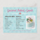 Ett attraktivt vykort på dubblan för bagerier som bakar muffinsar, kakor, desserter och andra bakade varor. Den har en blå bakgrund för cupkakan och gör att du kan redigera bilder med dina egna bakade varor (eller använda dem på flygplanet). Redigerbar text innehåller ditt mobila nummer, din e-postadress, din webbplats och på baksidan av bagerimenyn och en lista med smakämnen. Underbar för utlämning på marknader, bagerier, butiker, kunder och på en storlek för utlämning av reklam.