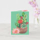 Kaktus, Sukkulenter, Kaktusblomma, Falt gratulationskort - En magnifik målad kaktuskruka full av suckulenter, kaktus och vackra färger, som i den ympade månkaktusen. Den rosa kaktusblomman sitter bredvid krukan med kaktus, vilket ger ännu mer av en tredimensionell look till detta kort. Insidan av kortet är dekorerad med några mindre kaktusväxter med blommor och samma gröna bakgrund.