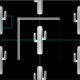 Enkelt och gulligt kaktusmönster i vit på svart tyg.