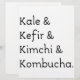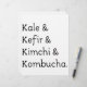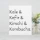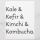 Kål, kefir, kimchi och kombucha text. Original textdesign.