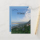 This postcard features a view of Kalamata, Greece. According to photographer, Vladan Raznatovic (2023), "This photo captures the enchanting seaside town of Kalamata, located on the southern coast of the Peloponnese peninsula in Greece. In the foreground, the crystal-clear waters of the Mediterranean Sea gently lap against the pebbly shore, inviting visitors to take a refreshing dip or simply relax and soak up the sun. In the background, the town's charming architecture is on full display, with terracotta-tiled roofs and whitewashed buildings nestled amongst the rolling hills. A prominent landmark is the Castle of Kalamata, a medieval fortress that overlooks the town and offers panoramic views".