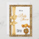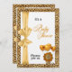 Könsneutral barnkalas inbjudan i en djungel safari tema med gyllene cheetah tryck.