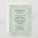 Kale Grönt Abstrakt Swirl Gräns Inbjudningskort för möhippan Framed-snurrar i hörnen. Baksidan har en strimlad mönster med den mörkare Pantone Kale färg. Rotera den för en annan effekt. Konvertera det här till valfri tillfälle. Lägg till ett foto och/eller ändra texten. Den blå är nära Niagara Blue populär i år.