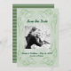 Kale Grönt Abstrakt Swirl Gräns Spara det platta datumkortet med ramvirvlar i hörnen. Baksidan har en strimlad mönster med den mörkare Pantone Kale färg. Rotera den för en annan effekt. Konvertera det här till valfri tillfälle. Lägg till ett foto och/eller ändra texten. Den blå är nära Niagara Blue populär i år.