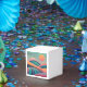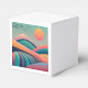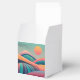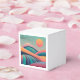 Ett abstrakt av att rulla backe i ljust vibrerande färg med djärvt struktur och en flock fåglar i himlar.