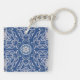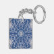 Bär den här designen av ett kalejdoskop med ljusblått blått med isig vit snö linjer och en liten stjärna i mitten tillsammans med nycklar. Bild på båda sidor.