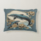 En livlig grupp lekfulla delfiner som väver genom gyllenbruna silkesblommor mot en mjuk blågrå bakgrund.