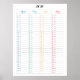 Färgrik kalenderaffisch för 2020 med fyra månader - april, maj, juni och juli i fyra olika färger, april är blå, maj är grön, juni är orange och juli är röd. Affischens mått är 18 tum gånger 24 tum (vertikal).