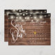 Den här fina "save the date"-kortet har strängljus och en kalender och ett fint guldhjärta som markerar ert speciella datum på en rustik träpanelbakgrund.