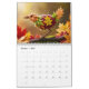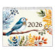 En vismisk illustration av en fågel på gren, omgiven av fyra olika säsongskalender. Fågans störtflod från vinterns isig blåser och vita till vår vibranta blommar, sommarens varma gulter och höstens löv, vilket visar säsongernas cykliska skönhet. Kalendern är försedd med blommor och löv som matchar varje säsong och skapar en känsla av harmoni och balans.